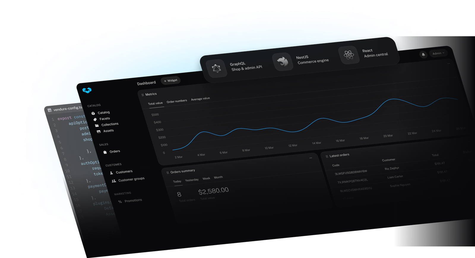 Vendure is a headless platform for building complex commerce systemsMeet the framework for B2B and multi-vendor commerce. Build custom workflows, business models, and architectures that SaaS platforms can't support.