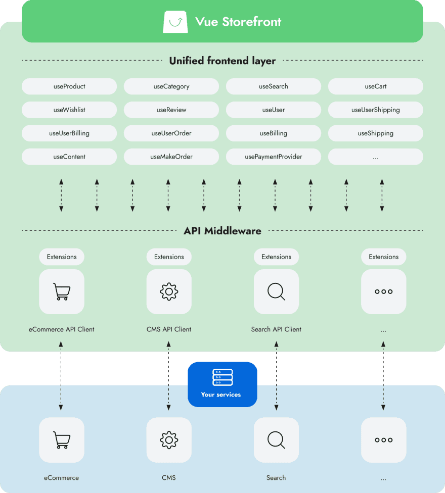 Vue Storefront is Lightning-Fast Frontend Platform for Headless Commerce. Boost your site performance, shape the customer journey and free your developer's creativity with Vue Storefront, the last frontend you will ever need.