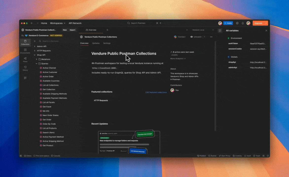 The Official Vendure Postman Collections Workspace